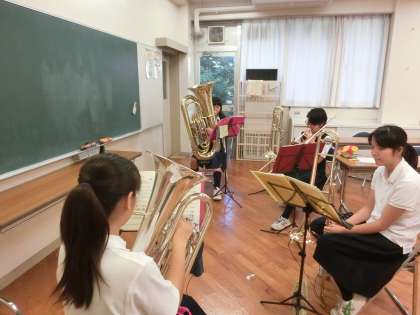 吹奏楽部が朝から活動しています。各パートに分かれて「STAR WARS SAGA」の練習していました。(遠藤)