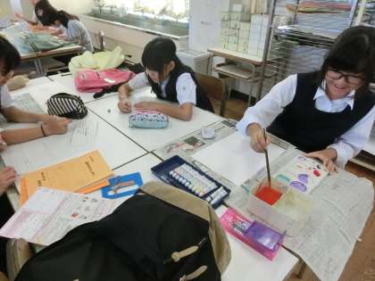 美術部が活動しています。合唱コンクールのポスター係の人たちも来ているようです。よいポスターに仕上げましょう。(遠藤)