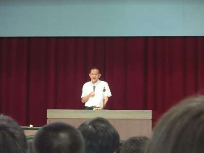 みなさん、おはようございます。長かった夏休みが終わり、本日から2学期が始まります。2学期の授業日数は81日と、3つの学期の中で最も長くなっています。季節も夏の終わりから実りの秋を経て冬へと移り変わます。ぜひ、みなさん一人ひとりにとって実りのある、充実・発展した学期にしてください。 さて、この夏休みの間に、ブラジルのリオデジャネイロで第31回オリンピック競技大会が開催されました。次回東京大会を控えているので注目度も高く、テレビの中継に釘付けとなった人も多かったのではないでしょうか。みなさんは、どんなニュースに注目したでしょうか?わたしは、日本選手団の活躍のなかでも、体操の男子団体と内村選手、テニスの錦織選手、バドミントンの高橋・松友選手、女子レスリングの伊調選手らに代表される土壇場での逆転勝利にとても大きく心を動かされました。