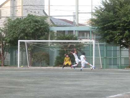 校庭では、サッカー部が活動しています。ハーフラインから1対1の練習をしていました。(遠藤)