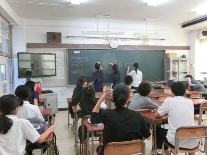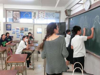 放課後、イングリッシュタイムが行われています。アリー先生との英語でのコミュニケーションを楽しんでいました。(遠藤)
