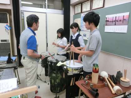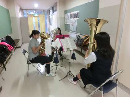 第2音楽室では、吹奏楽部が活動しています。1年生は、上級生のように上手に演奏できるようにがんばりましょう。(遠藤)