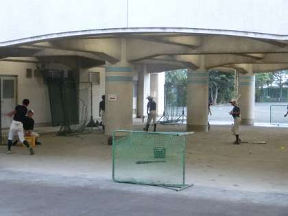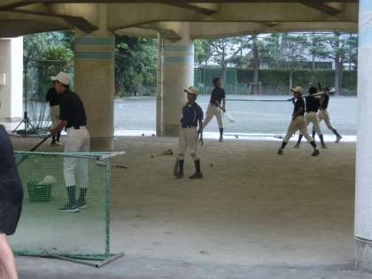 プール下が、野球部の雨天練習場になっていました。トスバッティングや素振りをしていました。(遠藤)