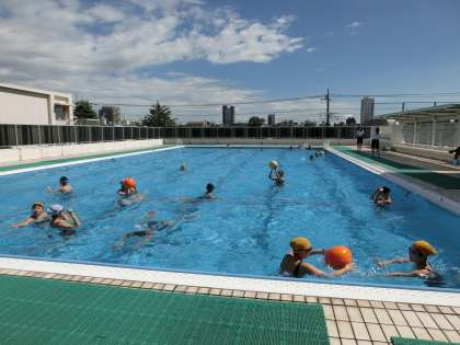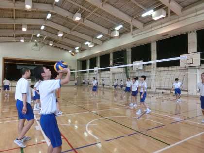 3年生の体育の様子です。男子は体育館でバレーボール、女子はプールです。3年生は、今日が、最後の水泳の授業になるようです。(遠藤)
