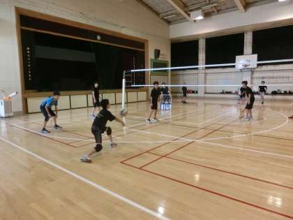 体育館では、男子バレーボール部が活動しています。実戦を想定して、レセプションからスパイクを打つまでの練習をしていました。(遠藤)