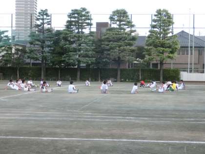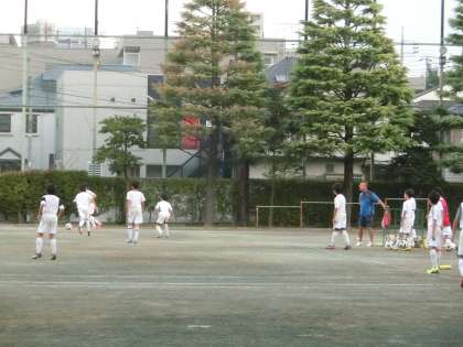 校庭でサッカー部が活動しています。今日も水田先生の熱い指導もとがんばっていますね。(遠藤)