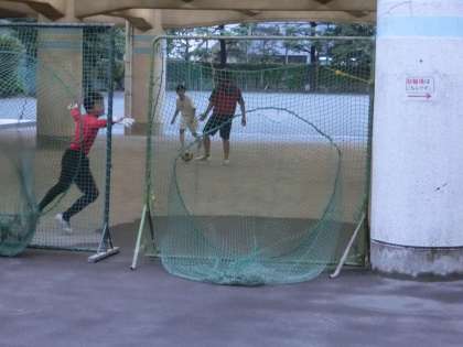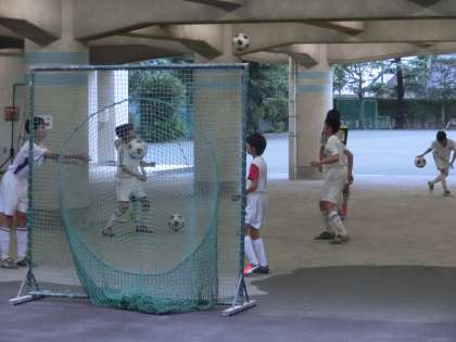 校庭の状態が良くないので、サッカー部はプール下で活動しています。水田先生のパスからシュートを打っていました。(遠藤)