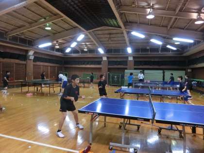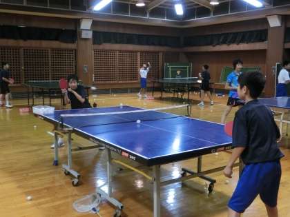 格技室では、卓球部が活動しています。1年生だけの活動ですが、自分たちで声を掛け合いながら練習していました。(遠藤)