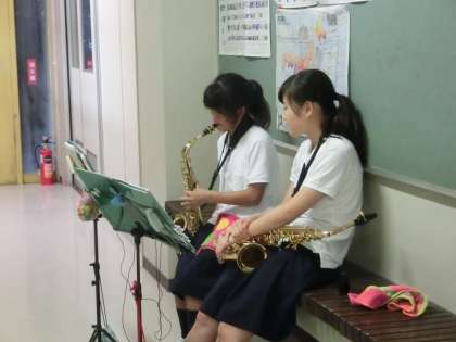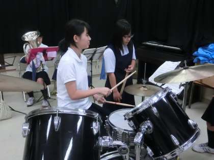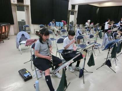 吹奏楽部の活動の様子です。3年生が1年生にアドバイスをしていました。先輩たちのように上手に演奏でるようになりましょう。(遠藤)