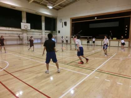 体育館で、バドミントン部が活動していました。2年生が職場体験でいないので、1年生だけの練習です。実践的な練習をしていました。(遠藤)