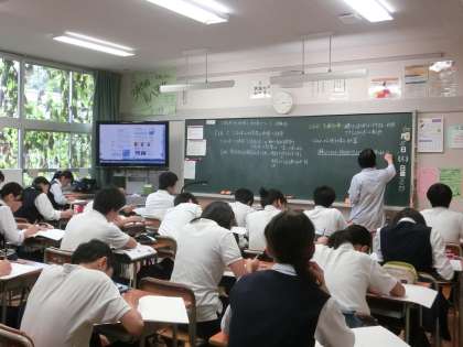 3年AB組の理科の様子です。エネルギーの保存と利用効率について学習していました。(遠藤)