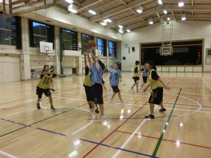 15時から女子バスケットボール部が活動しています。2メンや3メンのあと、5対5のゲーム形式の練習をしています。スクリーンをかけたり、ドライブに合わせて動いたり、練習でやっていることをゲームの中で試そうとしていました。(遠藤)