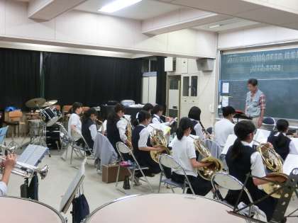 音楽室で吹奏楽部が活動していました。今日は、全員で合奏をしていました。みんなで合わせたときに、1つのすばらしい音楽をつくり上げるために、普段のパートごとの練習をがんばりましょう。(遠藤)