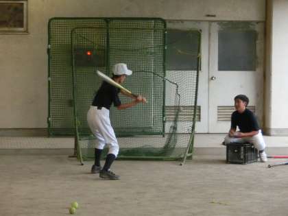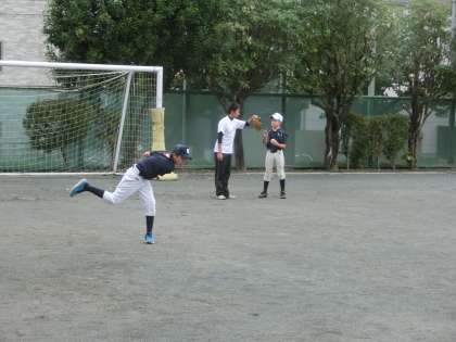 校庭で区陸の練習をしているので野球部はプール下でトスバッティングをしていました。ピッチャーは、フォームの修正や確認をしていました。(遠藤)