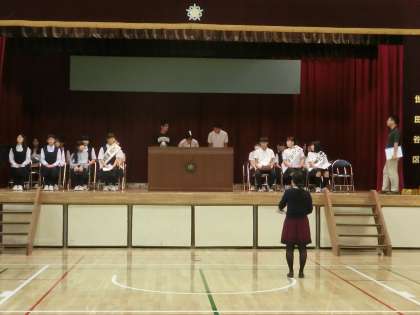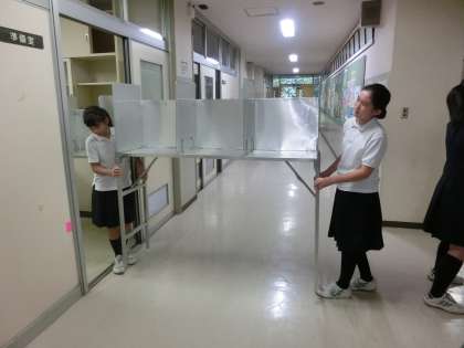 放課後、立会演説会のリハーサルが行われました。普段よりもゆっくりと話すことを意識するようにしましょう。選挙管理委員が実際の投票所で使用する機材を運んでいました。(遠藤)