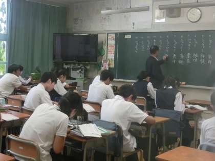 1年生の国語の授業の様子です。漢字テストの答え合わせを行っていました。(遠藤)
