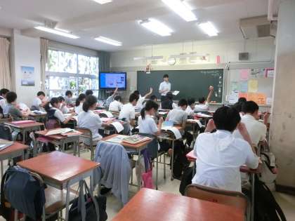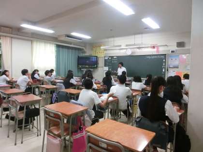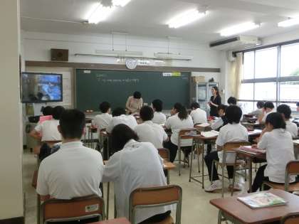 2年生の英語の授業の様子です。ビンゴをしたり、英語の歌を聴いたりしています。(遠藤)