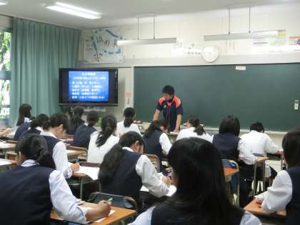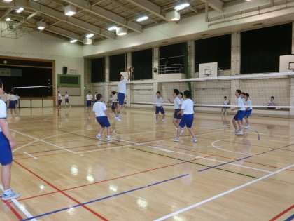 3年生の体育の授業の様子です。女子は保健の授業で、生活習慣病について学習していました。男子は体育館でバレーボールです。白熱した試合が展開されていました。(遠藤)