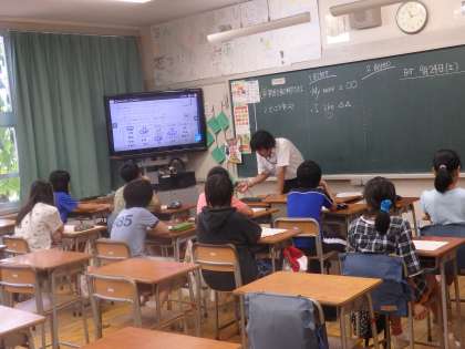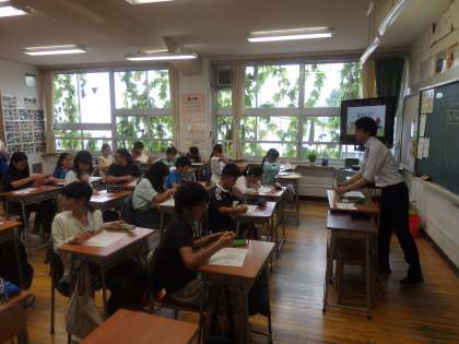 英語の体験授業の様子です。オールイングリッシュで授業が進められていました。自己紹介をしたり、ビンゴをしたりしていました。(遠藤)