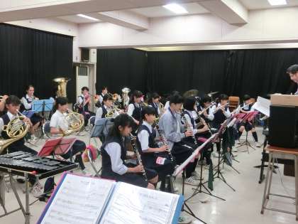 吹奏楽部の活動の様子です。今日の小学生体験入学のセレモニーでの演奏はすばらしかったですね。次は合唱コンクール午後の部にむけて練習していくようです。(遠藤)