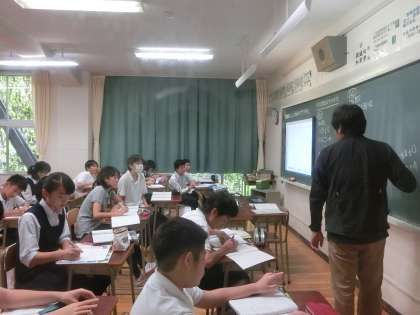 2年生の数学の授業の様子です。2元1次方程式のグラフから、連立方程式の解を求めていました。(遠藤)