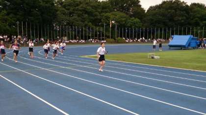 リレー決勝。共通男子と2年女子が1位、共通女子が4位、2年男子と1年女子が7位の好結果でした。