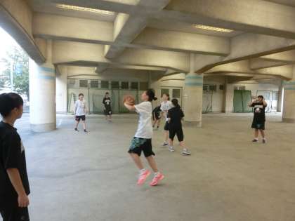 プール下では、女子バスケットボール部が活動しています。セットプレーの練習をしていました。試合の中で使えるように、スピードをあげていきましょう。(遠藤)