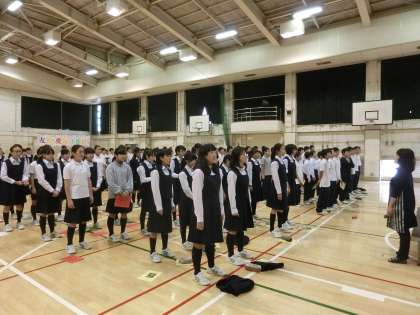 1年生の合唱コンクール学年練習が行われました。今回は、入場から退場までの動きの確認をしました。入場から退場までが審査の対象です。体の向きを変えたり、動き出したりするタイミングをきちんと覚えてきましょう。(遠藤)