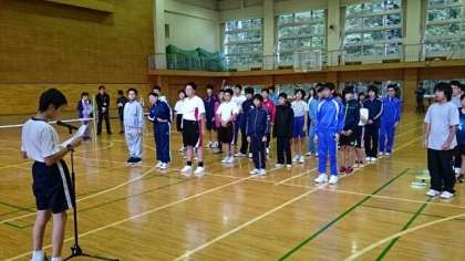 ミニテニス大会が始まりました。あじさい学級は、開会式で試合の進め方やルールの説明を担当しました。優勝めざしてがんばりましょう。
