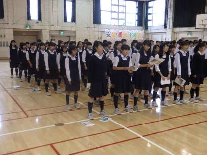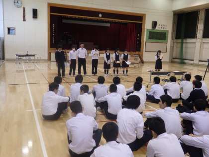 本日4校時、3年生の合唱コンクール学年練習を行いました。どのクラスもこれからの練習でもっと良くなる可能性を感じられました。また、実行委員を中心に自分たちで運営をしている姿もとても印象的でした。(田村)