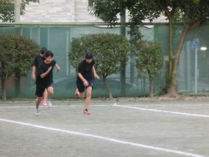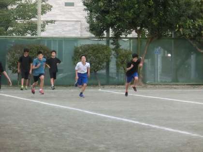 陸上競技部が校庭で活動しています。50mのタイムを計っていました。(遠藤)