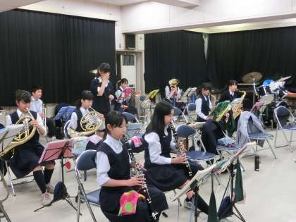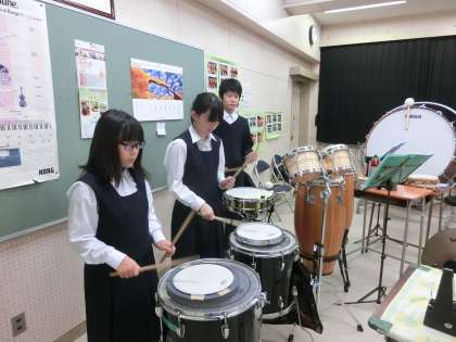 吹奏楽部が音楽室で活動していました。この後、みんなで合わせるようです。(遠藤)