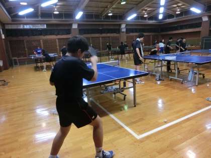 格技室では卓球部が活動していました。フォアハンドやバックハンドの練習をしていました。反復練習が大切ですね。(遠藤)