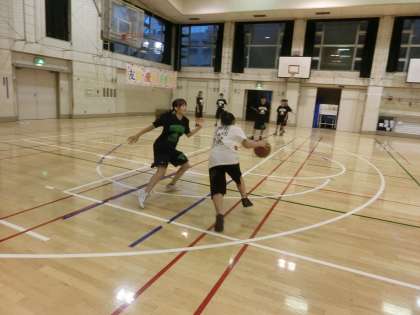 体育館では女子バスケットボール部が活動していました。ディフェンスは、強くあたることを意識しましょう。オフェンスは、よりスピードを意識しましょう。(遠藤)