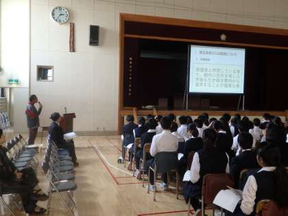 本日6校時に第2回進路説明会を体育館で行いました。進路指導主任の水田より都立、私立の入試の仕組みや日程についてなどを説明させていただきました。3年生ならびに1,2年生の保護者の皆さまにはお忙しいところ参加していただきありがとうございました。今後も生徒たちの進路選択を学校一丸となってサポートしてまりますのでよろしくお願いいたします。(田村)