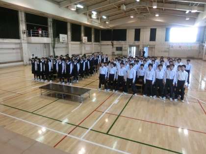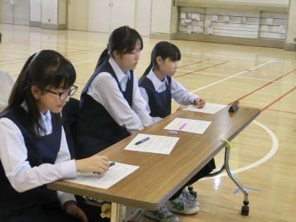 本日3校時、1年生の学年リハーサルを行いました。各クラス、入場から退場までを通して確認するなかで、自由曲を歌いました。審査員も審査の練習をしました。本番まであと2日、悔いの残らないようがんばりましょう。(遠藤)