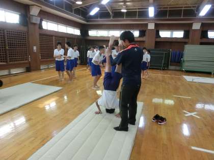 1年生の体育の授業の様子です。男子は格技室でマット運動をしていました。女子は校庭で1500mのタイムを計っていました。(遠藤)