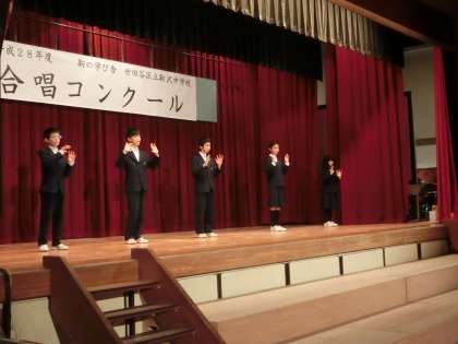 手話部による歌の発表と有志合唱の様子です。手話部は「トライエブリスィング」を手話で発表しました。有志合唱は「親知らず子知らず」を歌いました。(遠藤)