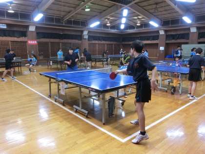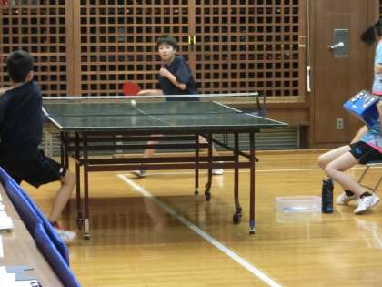 格技室では卓球部が活動しています。今日は、ランキング戦を行っています。ランキング1位をめざしてがんばりましょう。(遠藤)