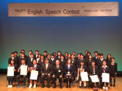 世田谷区英語スピーチコンテストの1年生の暗唱の部、帰国子女のスピーチの部が終了しました。参加した本校の1年生は残念ながら入賞はできなかったものの、とても堂々と発表できていて素晴らしい暗唱でした。これから2、3年生によるスピーチの部が始まります。本校の生徒も1名参加しています。練習の成果を存分に発揮しましょう。(森川)