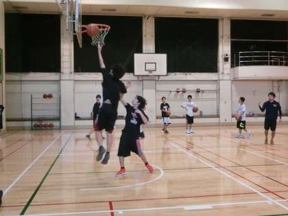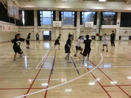 体育館ではバスケットボール部が活動しています。男子は、課題であるシュート練習です。ていねいにシュートを打ちましょう。女子はパックラインディフェンンスです。クローズアウトをきちんとしましょう。(遠藤)