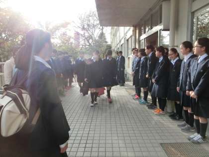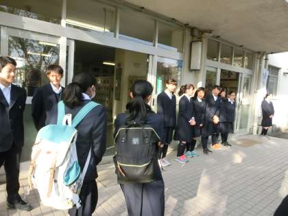 今日から駒の学び舎あいさつ運動が始まりました。生徒会本部役員とJRC部の生徒が昇降口に立ち、元気なあいさつをしています。元気なあいさつは本当に気持ちがいいですね。明日からは、学び舎の小学校に行ってあいさつ運動を行います。(遠藤)