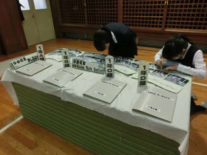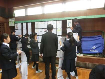 校内作品展前日準備が行われました。前期の専門委員や各教科の教科係の人たちが作品を展示する準備をしていました。明日から校内作品展が始まります。保護者や地域の方にも公開しています。ぜひ、校内作品展を見学しにいらしてください。(遠藤)