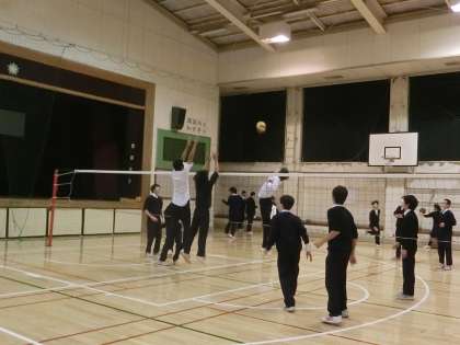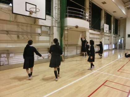 昼休みの体育館の様子です。今日の体育館開放は2年生です。男子はバレーボールをしていました。都大会に出場したバレー部の生徒がたくさんいて昼休みの遊びとは思えないほどレベルの高いバレーボールをしていました。女子はバスケットボールをしていました。(遠藤)
