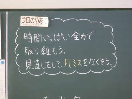 2学期の期末考査1日目です。今日は、英語、数学、美術の試験が行われます。「今日のめあて」にあるように、時間いっぱいまで全力で取り組み、見直しもきちんとしましょう。(遠藤)