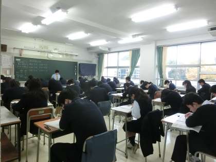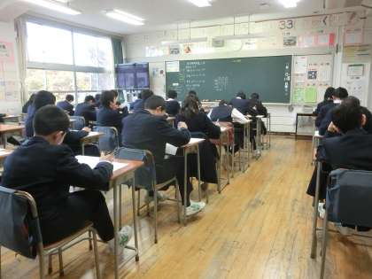 2学期の期末考査2日目です。今日は、理科、国語、音楽の試験が行われます。みんな集中して試験に取り組んでいますね。最後まであきらめず、きちんと見直しをしましょう。(遠藤)