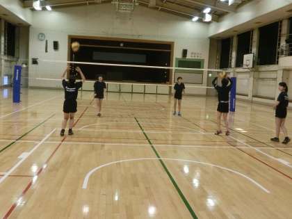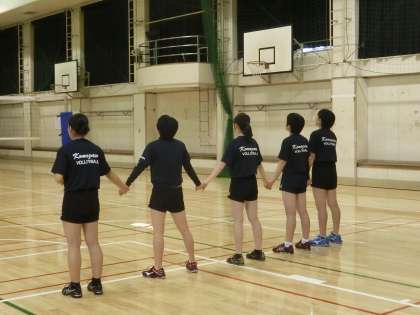 体育館では女子バレーボール部が活動しています。練習の最初に大きな声で気合をいれていました。(遠藤)