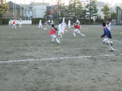 校庭ではサッカー部が活動していました。ダイヤモンドの形を崩さないように、パスを出したら素早くフォローに動きましょう。(遠藤)