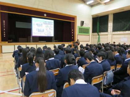 6時間目は体育館に移動し、8校の高校紹介を聞きました。