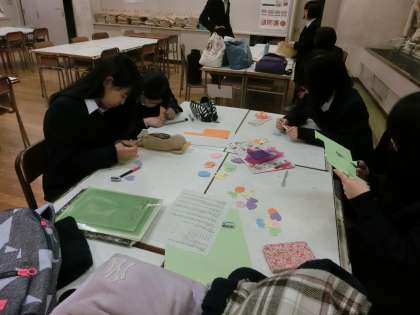 美術室では、美術部が活動していました。美術部の3年生は来週で引退になるということで、2年生が3年生のメッセージを作っていました。(遠藤)